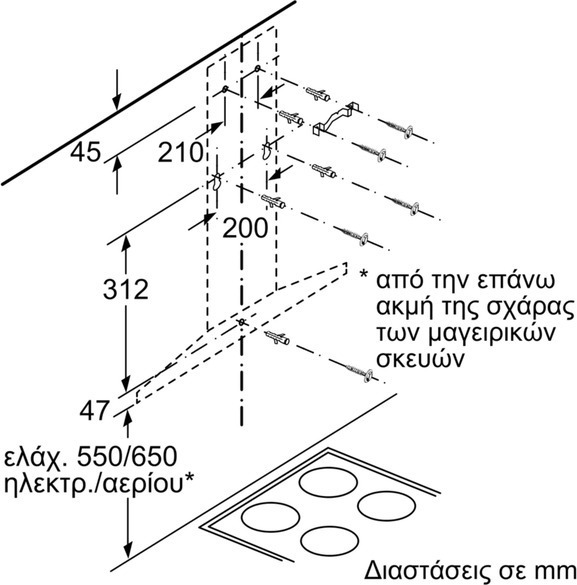- Ελάχιστη απόσταση από εστίες αερίου: 65 εκ.
