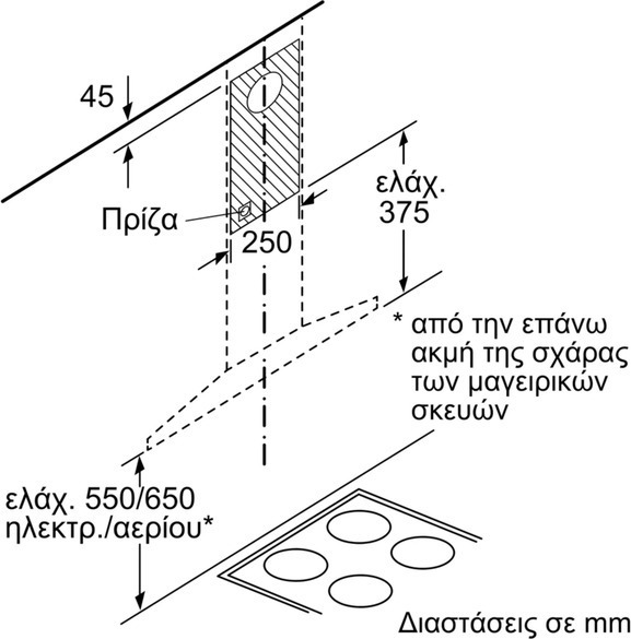- Ελάχιστη απόσταση από ηλεκτρικές εστίες: 55 εκ.