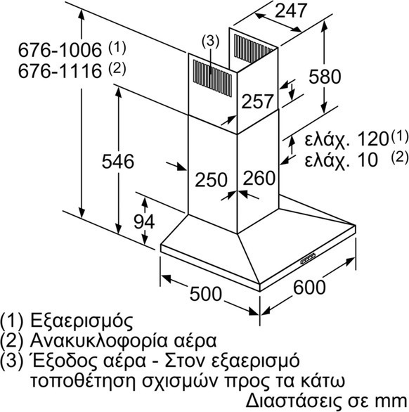- Τρόπος λειτουργίας: Εξαγωγή / Ανακύκλωση (Ξεχωριστό εξάρτημα)
