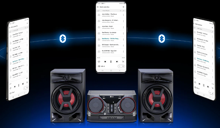 Συνδέστε δύο ηχεία πάρτι LG XBOOM για να αναβαθμίσετε τον ήχο του πάρτι σας. Μπορείτε να χρησιμοποιήσετε επίσης οποιαδήποτε συμβατά ηχεία.
