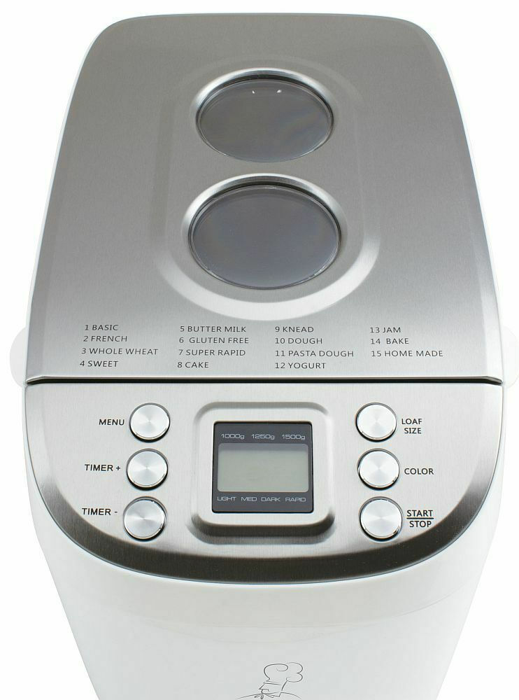 Διαθέτει 15 αυτόματα προγράμματα ψησίματος, μεταξύ των οποίων είναι: βασικό, μπαγκέτα, ολικής άλεσης, γλυκό, κέικ, ζύμη, μαρμελάδα, κλπ. Για πιο υγιεινό αποτέλεσμα μπορείτε επίσης να χρησιμοποιήσετε και αλεύρι ή μείγματα που δεν περιέχουν γλουτένη.
