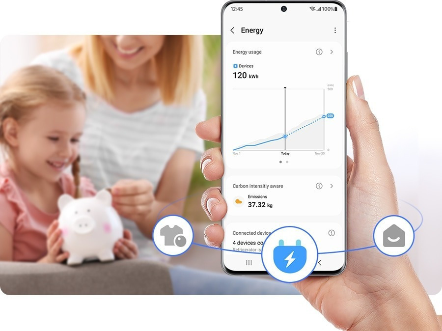 Με το SmartThings Energy, έχεις πλήρη έλεγχο στην κατανάλωση ενέργειας των συσκευών σου. Σου δίνει συμβουλές για πιο αποτελεσματική χρήση και σε προειδοποιεί όταν κινδυνεύεις να ξεπεράσεις τους μηνιαίους στόχους. Έτσι, πάντα θα ξέρεις που βρίσκεσαι, χωρίς να αγχώνεσαι!